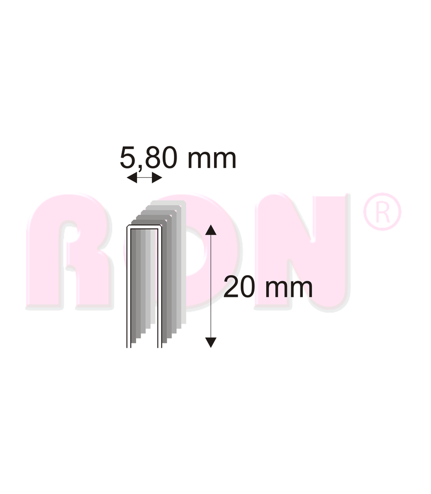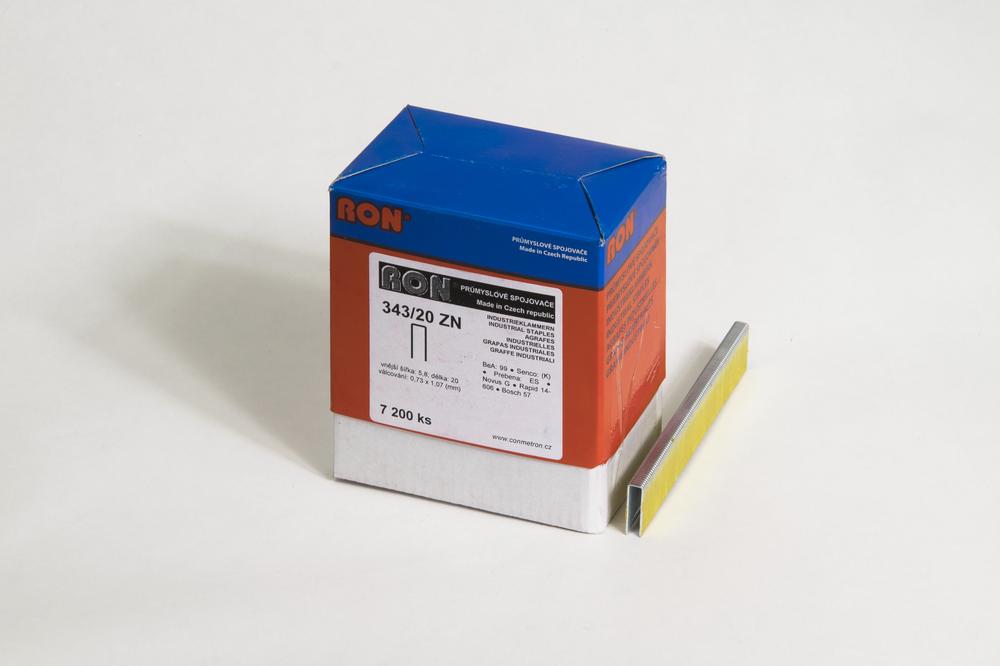 Truhlářské spony, sponky pro elektrické a pneumatické sponkovačky. Spojovače široké 5,8 mm, silné 1,13 mm a dlouhé 20 mm.
