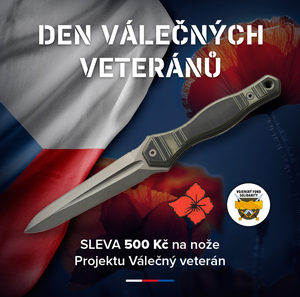 Jedním z pilířů naší podpory je Projekt Válečný veterán, který jsme zahájili v roce 2019 ve spolupráci s Vojenským fondem solidarity. Cílem projektu je vyjádřit respekt a poděkování vojákům a zároveň přispívat na konkrétní pomoc těm, kteří se kvůli výkonu služby dostali do těžké životní situace. Každý náš nůž z edice Válečný veterán je nejen kvalitní český výrobek s vojenským odkazem, ale také prostředek skutečné pomoci – z každého prodaného kusu putuje 300 Kč právě do Vojenského fondu solidarity.