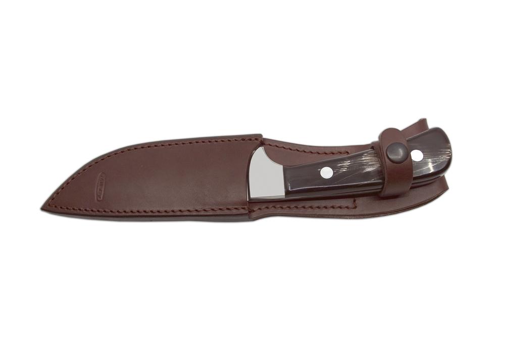 Dýka 398-NR-13/B Lovecká Lovecká dýka s názvem LES patří mezi nejoblíbenější a je naprostou klasikou mezi loveckými noži společnosti Mikov s.r.o. Dýka řady 398 LES je vyráběna ve dvojím provedení šířky čepele a to typ A (užší čepel) a typ B (širší čepel). Čepel je vyrobena z kvalitní nerezové oceli typ 420 s tvrdostí 53-56 HRc. Hřbet čepele je ke hrotu zcela lehce svažitý a do dvou třetin délky je zbroušený. Zcela klasické zakřivení čepele do hrotu ke hřbetní straně usnadňuje řezání právě špičkou nože. Ocel čepele prostupuje také celou rukojetí. Výčnělek záštity je před střenkami doplněn přídavným kováním z masivní oceli, které z části přechází i do rukojeti. V úchopu tak dodávají ukazováčku stabilní oporu a jasnou informaci, co se s nožem děje. S celkovou hmotností cca 250 g jde o opravdu robustní nástroj. Střenky jsou vyrobené z pravého buvolího rohu a dávají tak loveckému noži LES elegantní tvar. Dýka je standardně dodávána s koženým pouzdrem. Lovecká dýka LES patří mezi nejprodávanější nože firmy Mikov s.r.o. Mikulášovice.