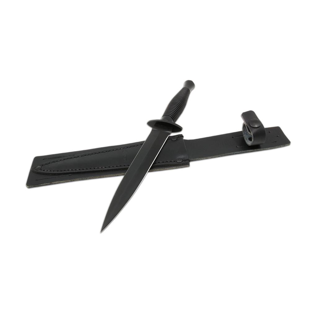 Dýka 399-OK-1 COMMANDOS 399-OK-1 je replikou dýky COMMANDOS. Čepel dýky je vyrobena je z kvalitní uhlíkové oceli typ GR 1070 (12 071) s tvrdostí 55 - 58 HRc a má klínový výbrus. Povrchová úprava Cerakote Graphite. Střenka dýky COMMANDOS je kovová s drážkováním zakončená záštitou, která zabraňuje sklouznutí ruky. Počet funkcí: 1 Dýka 399-OK-1 COMMANDOS je dodávána v černém koženém pouzdře. Dýka 399-OK-1 COMMANDOS patří mezi originální výrobky firmy Mikov s.r.o. Mikulášovice.