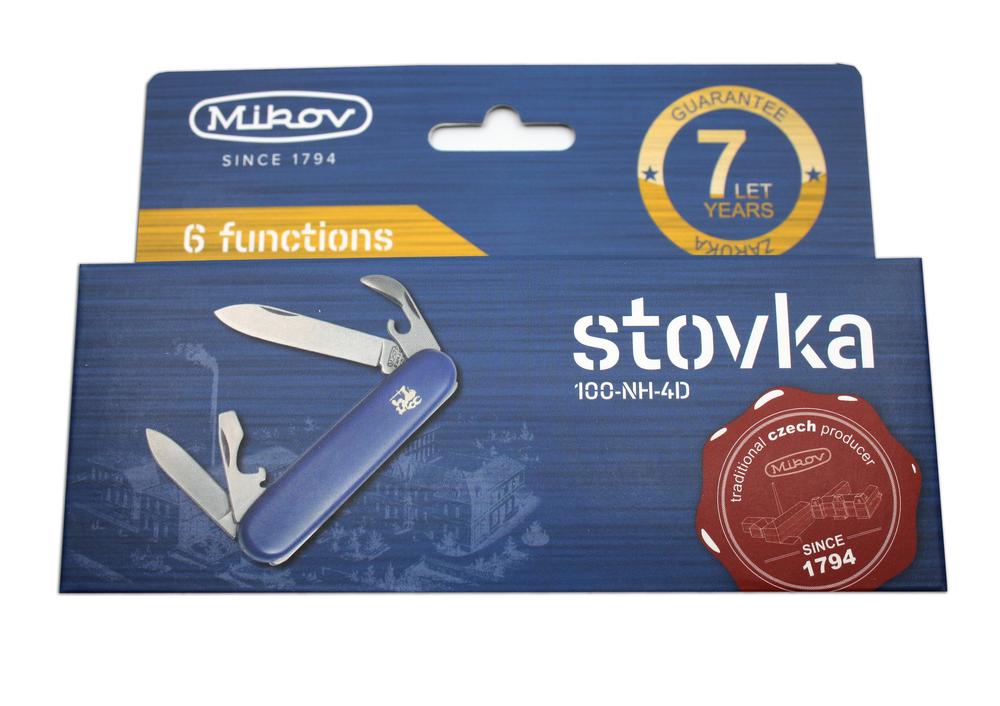 Stovka je tradiční kapesní zavírací nůž. Jednou z mnoha výhod Stovky je velikost, vejde se do každé kapsy a je proto ideálním společníkem pro každou příležitost. Příkladem využití může být táboření, krájení potravin, využití v přírodě nebo při práci na zahradě. Čepel kapesního nože Stovka je vyrobena z kvalitní nerezové oceli 420, elegantní střenka je vyrobena z odolného plastu, díky které padne do každé ruky. Stovka je kvalitní výrobek nožířské firmy Mikov, která sídlí v srdci Českého Švýcarska ve městě Mikulášovice.