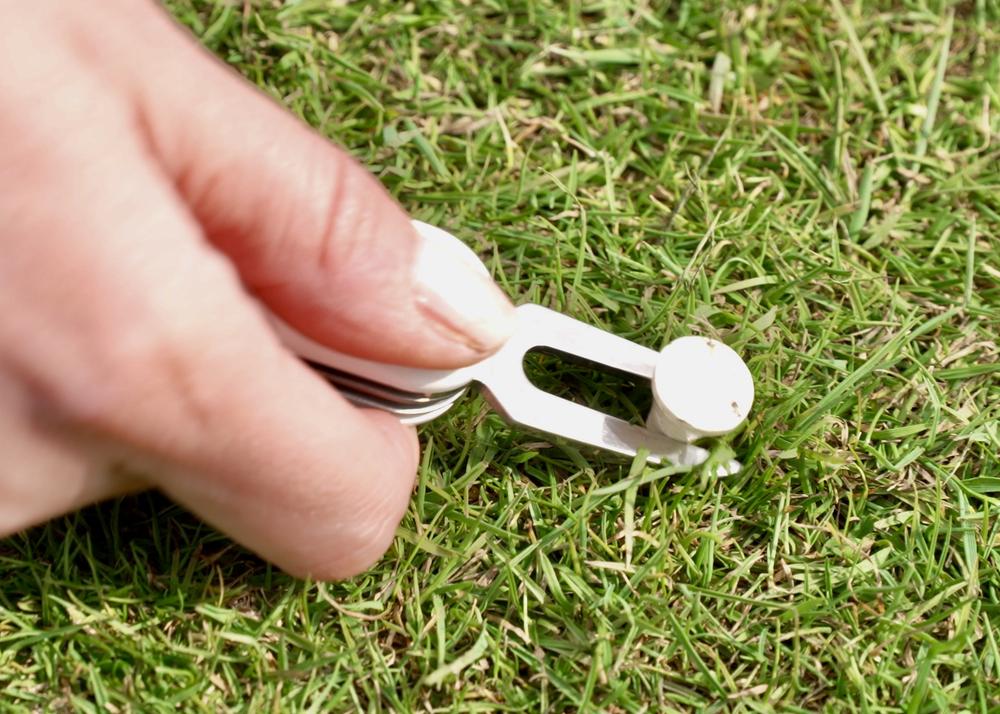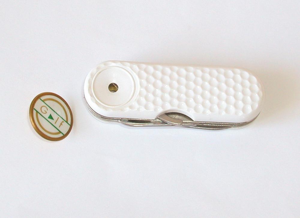 Marker jde jednoduše vyjmout, vložit na green a opět připevnit na střenku nože. Vypichovátko Vám pomůže zachovat trávník v neporušeném stavu, klíč na spiky od bot zajišťuje profesionální komfort golfisty a hrot k vypíchnutí díry pro Teečka a odstranění nečistot je velmi praktickým pomocníkem, zejména v jarních a podzimních měsících. Čepel nože rozšiřuje možnosti využití i na mimo sportovní aktivity.