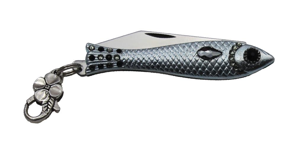 Nůž 130-NZn-1/KZ NYLUS Tato Rybička patří mezi kapesní zavírací nože, které jsou ručně zdobené kamínky Preciosa a proto je zařazena do kategorie dekorativních předmětů. Rybička je vložena do plechové dárkové krabičky PDK1 a je opatřena ozdobnou karabinkou. Každý nůž je ručně zdobený a stává se skutečným originálem s kráskou vzpomínkou na naše dětství. Střenky nože Rybička jsou vyrobeny ze zinkové slitiny a čepel nože je z kvalitní nerezové oceli typ 420 s tvrdostí 52-55 HRc. Tento originální výrobek patří do kolekce ručně zdobených nožů firmy Mikov s.r.o. Mikulášovice.