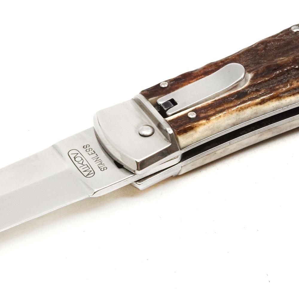 Material : blade made of high quality stainless steel 420 with a hardness of 52-55 HRc Handle from genuine antler