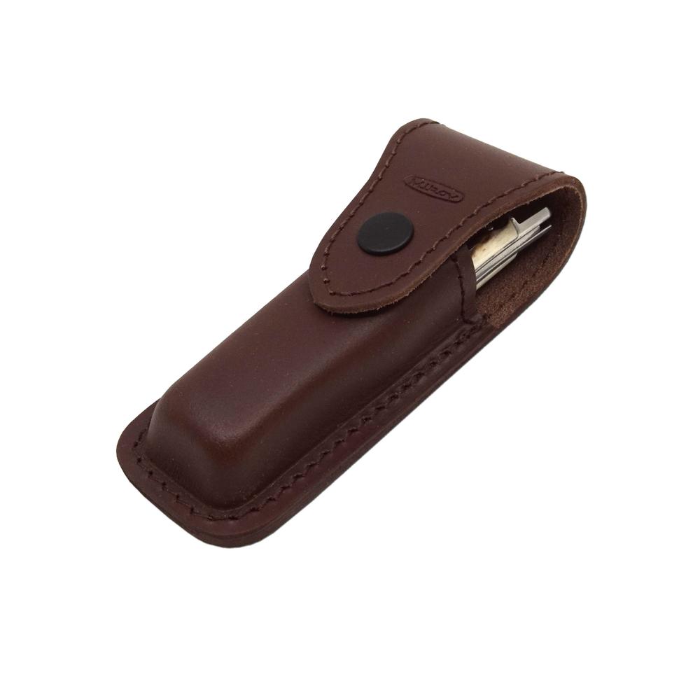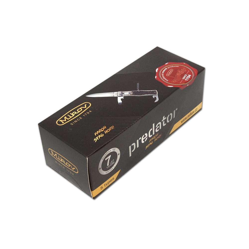 Is Czech made knife with great heritage of Czech knife making. One of the many advantages of PREDATOR is that the knife can be quickly opened with one hand from the side. The knife blade is made of high-quality stainless steel 420 with a hardness of 52–55 HRc. The handle of the knife is made of real deer antler, which is very popular among hunters and nature lovers. Its shape not only guarantees a pleasant and firm grip, but also prevents the hand from slipping and injuries. The knife has a luxurious and elegant design. Upon the customer's request, it is possible to produce PREDATOR in a left-handed design (cannot be combined with a corkscrew!) And it is also possible to engrave a logo or lettering on the blade. This PREDATOR is delivered including a luxurious leather case with a belt loop. The knife is manufactured with 1-4 tools. For example with the main blade, saw, can opener or bottle opener with screwdriver, groove for easy stripping of cables and corkscrew.