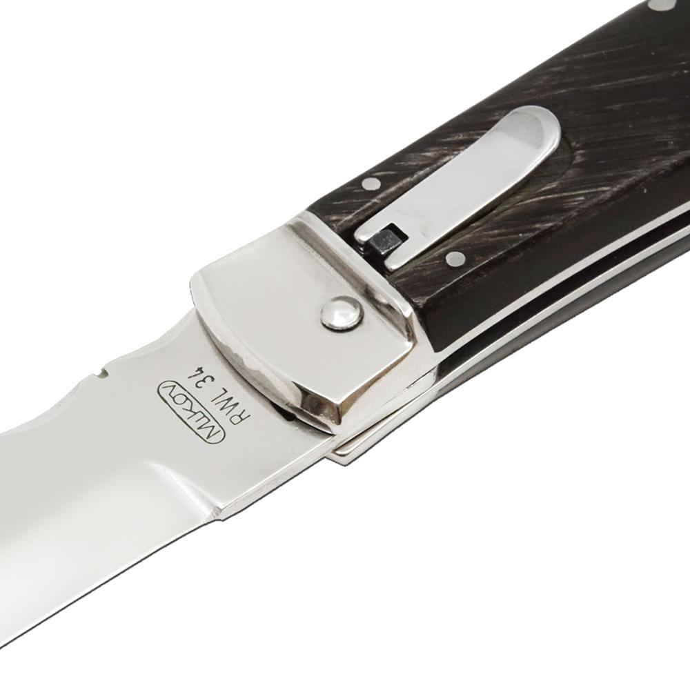 Nůž PREDATOR je vyhazovací, automatický nůž firmy Mikov, která sídlí v srdci Českého Švýcarska ve městě Mikulášovice. Jednou z mnoha výhod PREDATORU je, že se nůž dá rychle otevřít jednou rukou. Čepel nože je vyrobena z vysoce kvalitní švédské nerezové oceli RWL 34, která je vyráběna pomocí ochlazování práškových ocelí s tvrdostí 58–61 HRc. Tato ocel vyniká vysokou tvrdostí, dlouhou řezivostí a je odolná proti přelomení i opotřebení. Nůž má zdobené hřbetní pero a horní část čepele. Střenka nože je vyrobena z buvolího rohu, jehož struktura vytváří originální kresbu. Svým tvarem zaručuje nejen příjemný a pevný úchop, ale zároveň brání sklouznutí ruky a poranění. Nůž má luxusní a elegantní design. Na přání zákazníka je možné vyrobit PREDATOR i v levorukém provedení a na čepel je rovněž možné vygravírovat logo či nápis. Tento PREDATOR je vyráběn pouze v jednodílném provedení a je dodáván s luxusním koženým pouzdrem s poutkem na opasek.