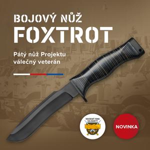 S hrdostí představujeme nový nůž FOXTROT, pátý nůž z Projektu válečný veterán. Tento projekt dlouhodobě podporuje české válečné veterány, připomíná jejich službu v zahraničních misích a prostřednictvím vybraných speciálních edic nožů také finančně přispívá na pomoc těm, kteří po návratu potřebují podporu. Z každého prodaného nože z projektu je věnováno 300 Kč na pomoc válečným veteránům.