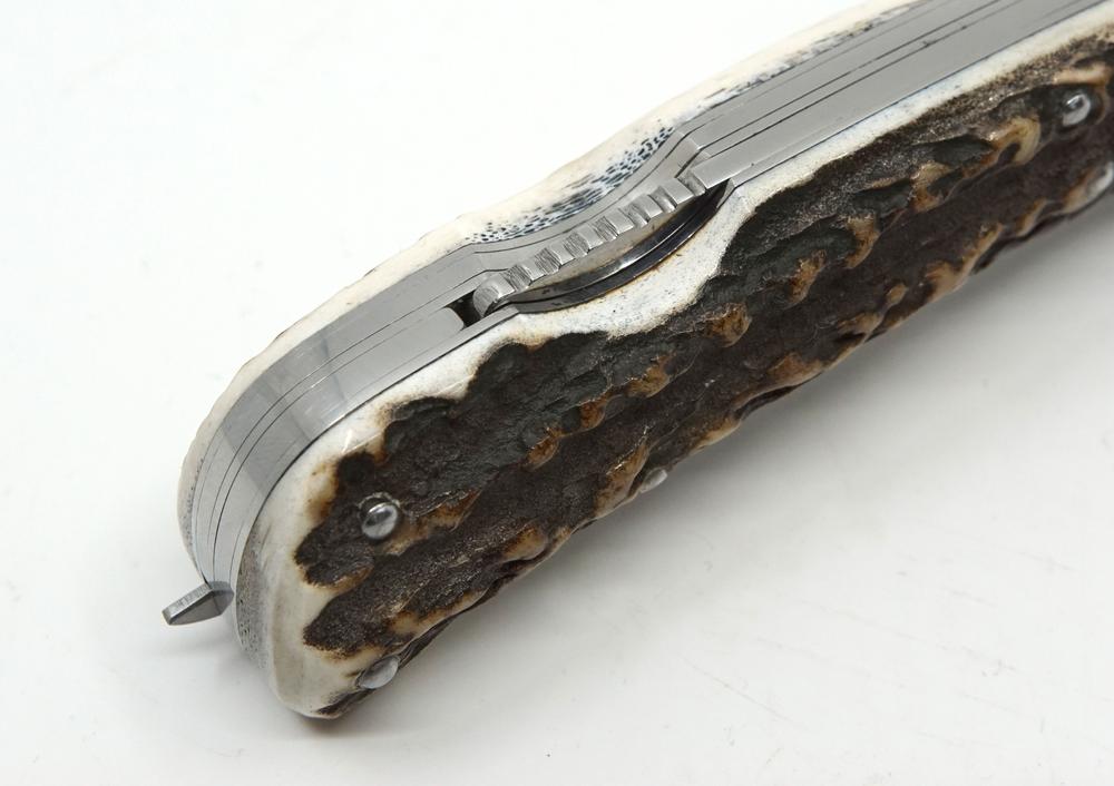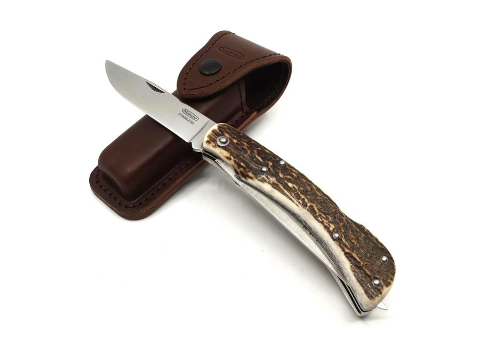 VYBAVENÍ: Pro výrobu střenky loveckého nože HUBERT jsme použili pravé jelení paroží. Čepel je vyrobena z kvalitní nerezové oceli 440A o tvrdosti 54-57 HRc. Čepel loveckého nože HUBERT je jištěna bezpečnostní pojistkou backlock. Lovecký nůž HUBERT je vybaven také velkou praktickou prodlouženou pilkou s otvíráním z čela nože - bez nehetníku, bez pojistky. Lovecký nůž HUBERT je dodáván včetně kvalitního koženého pouzdra s logem Mikov. Lovecký zavírací nůž HUBERT je nový a loveckou veřejností očekávaný výrobek s charitativním příspěvkem společnosti Mikov Mikulášovice, která se nachází v Českém Švýcarsku.