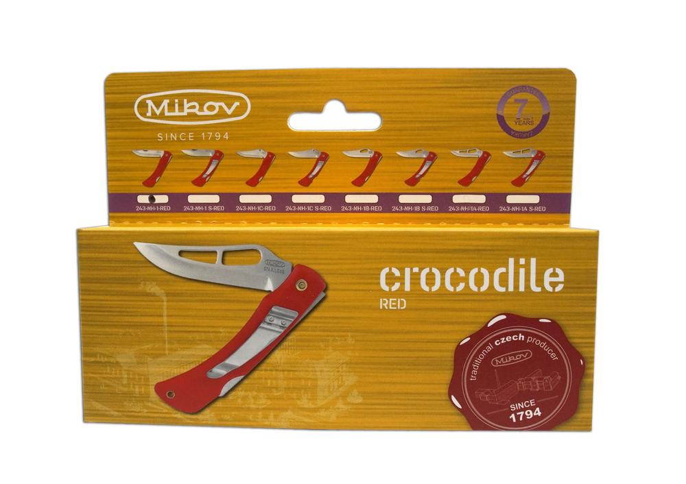 The pocket folding knife from the knife company Mikov CROCODILE 243-NH-1 / A with the most used backlock blade safety is a great pocket knife for everyday wear. Examples of use can be camping, slicing food, use in nature. CROCODILE is a very light knife, which thanks to the modified handle fits perfectly in every hand. Equipment: CROCODILE parts are made of high-quality STAINLESS STEEL 420-52-55 HRc and modified very durable plastic handle, which fits perfectly into any hand The blade offers high level of sharpness and unique shape, which is complemented by a high-quality handle with a modified design. Number of functions: 1 CROCODILE is a high-quality product from the knife company Mikov, its history dates back to 1794 and is located in the town of Mikulášovice, which is located in the Czech Switzerland National Park.