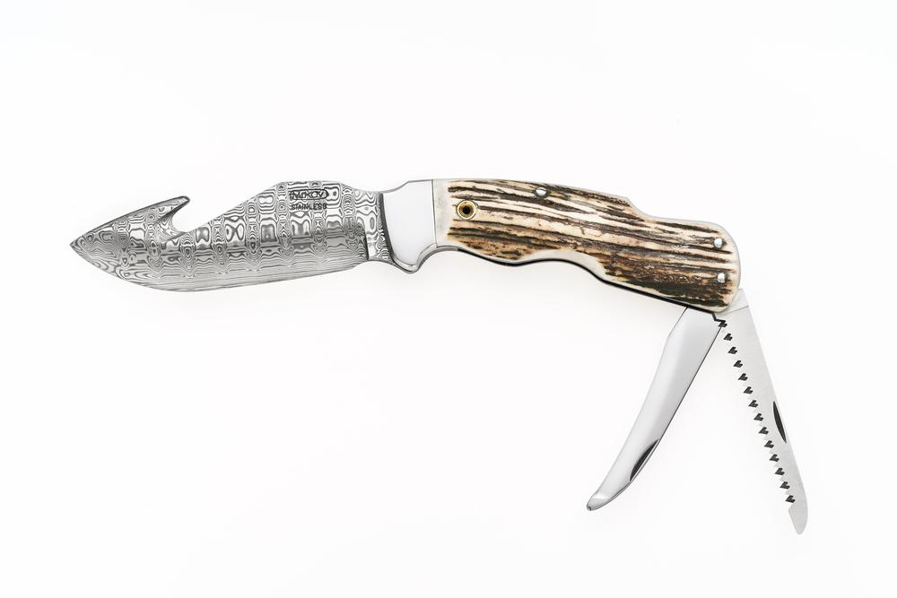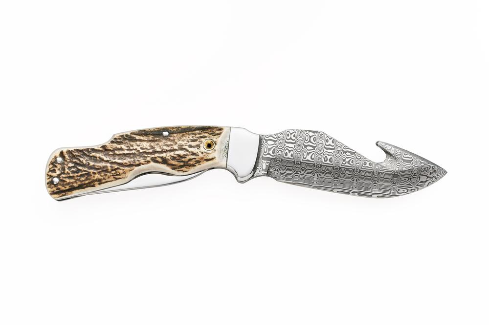 materiál čepele: damašková ocel PMC 27 materiál střenky: jelení paroh
